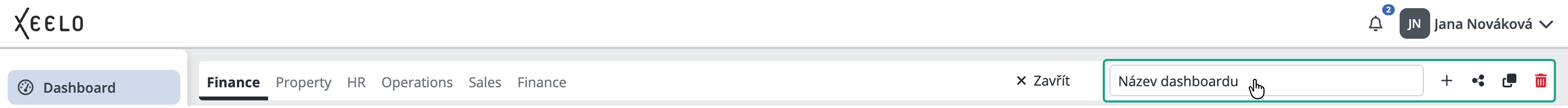 Úprava názvu – kliknutím do textového pole můžete změnit název dashboardu.