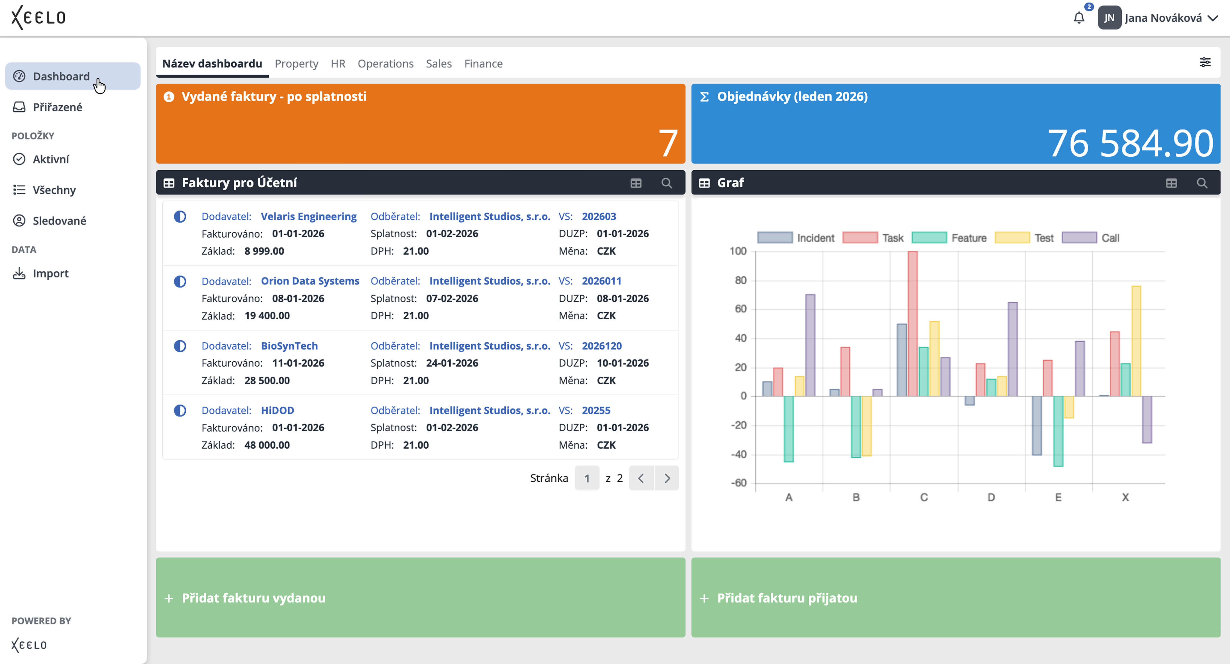 Dashboard slouží jako vaše osobní pracovní nástěnka. Můžete si ho přizpůsobit podle svých potřeb a zaměřit se na informace, které jsou pro vaši roli nejdůležitější. Díky widgetům snadno sledujete stav požadavků, přistupujete k datům nebo rychle vytváříte nové záznamy.