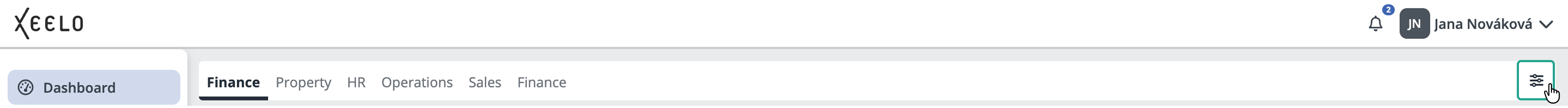 Pro přístup ke správě dashboardu klikněte na ikonu Nastavení v pravém horním rohu obrazovky. Pokud máte nastaveno více dashboardů, stačí přepnout na příslušnou záložku a vybrat ten, který chcete spravovat.