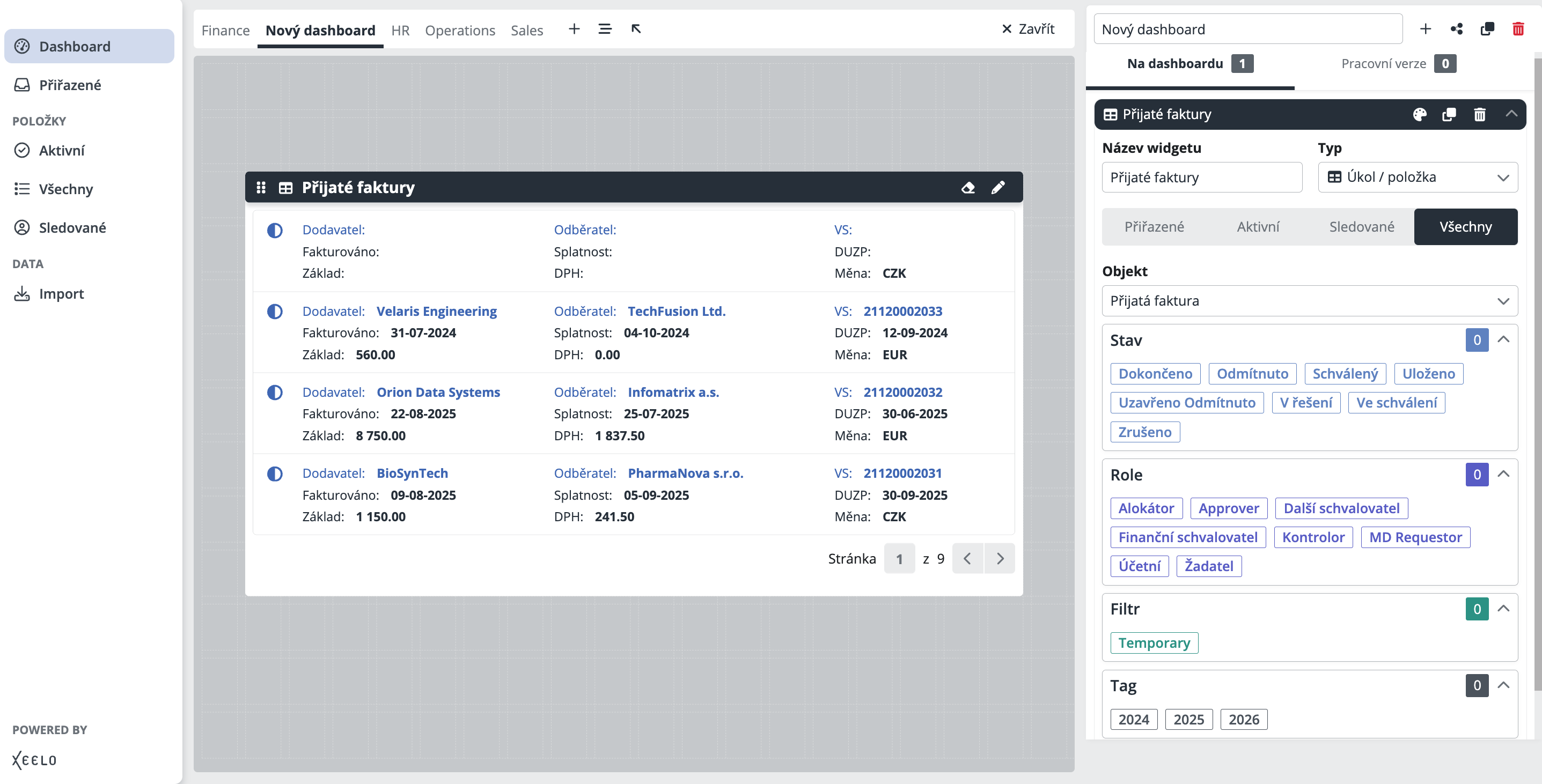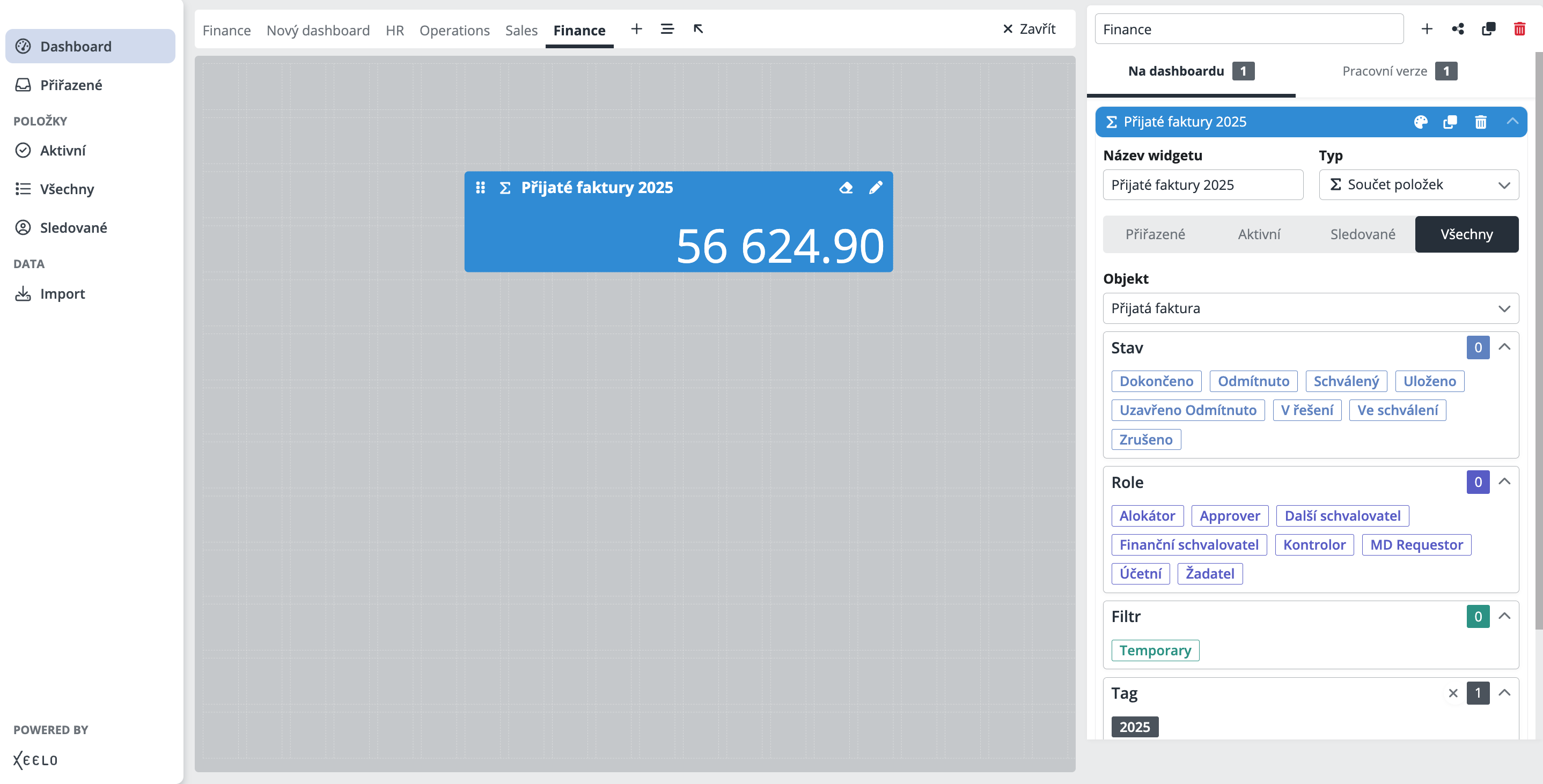 Pracujete opakovaně s jedním důležitým požadavkem? Připněte si ho na dashboard a zobrazte si přímo to, co vás z něj zajímá nejvíce – třeba jen aktuální stav, finální částku, nebo schvalovací sekci. Už žádné zdlouhavé dohledávání – klíčové informace máte vždy na očích.