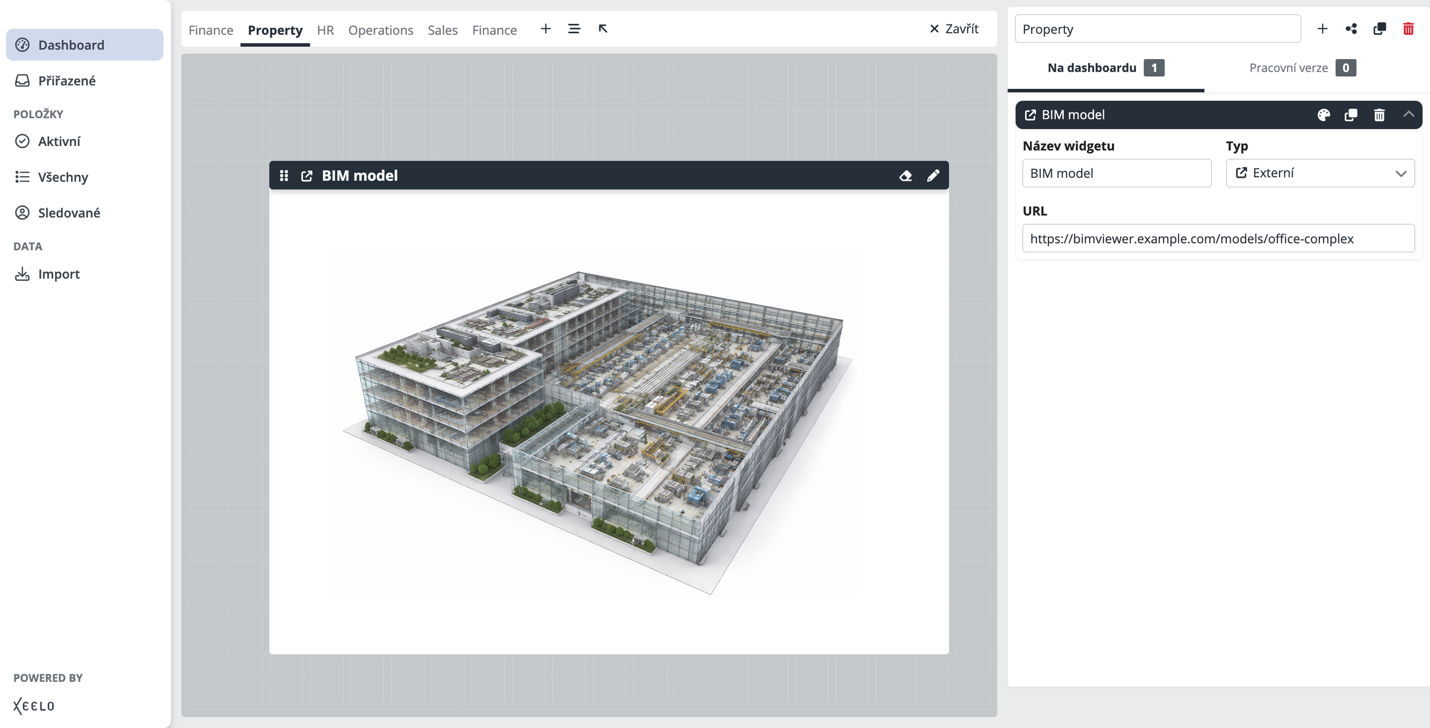 Potřebujete mít rychlý přístup k externí aplikaci, portálu nebo vizualizaci? Vložte si do dashboardu odkaz například na online BIM model budovy. Model se zobrazí přímo v rámci widgetu a umožní vám s ním interaktivně pracovat bez nutnosti opouštět platformu.
