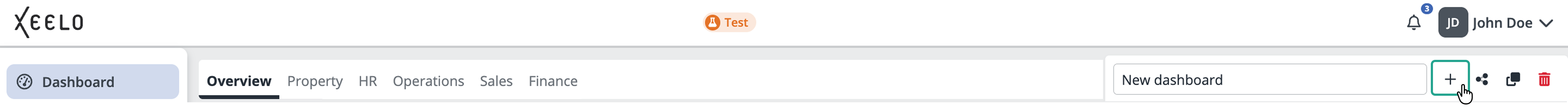 Each new dashboard can be named immediately. Click the field with the default name New dashboard and enter any name that describes the purpose or focus of the dashboard.