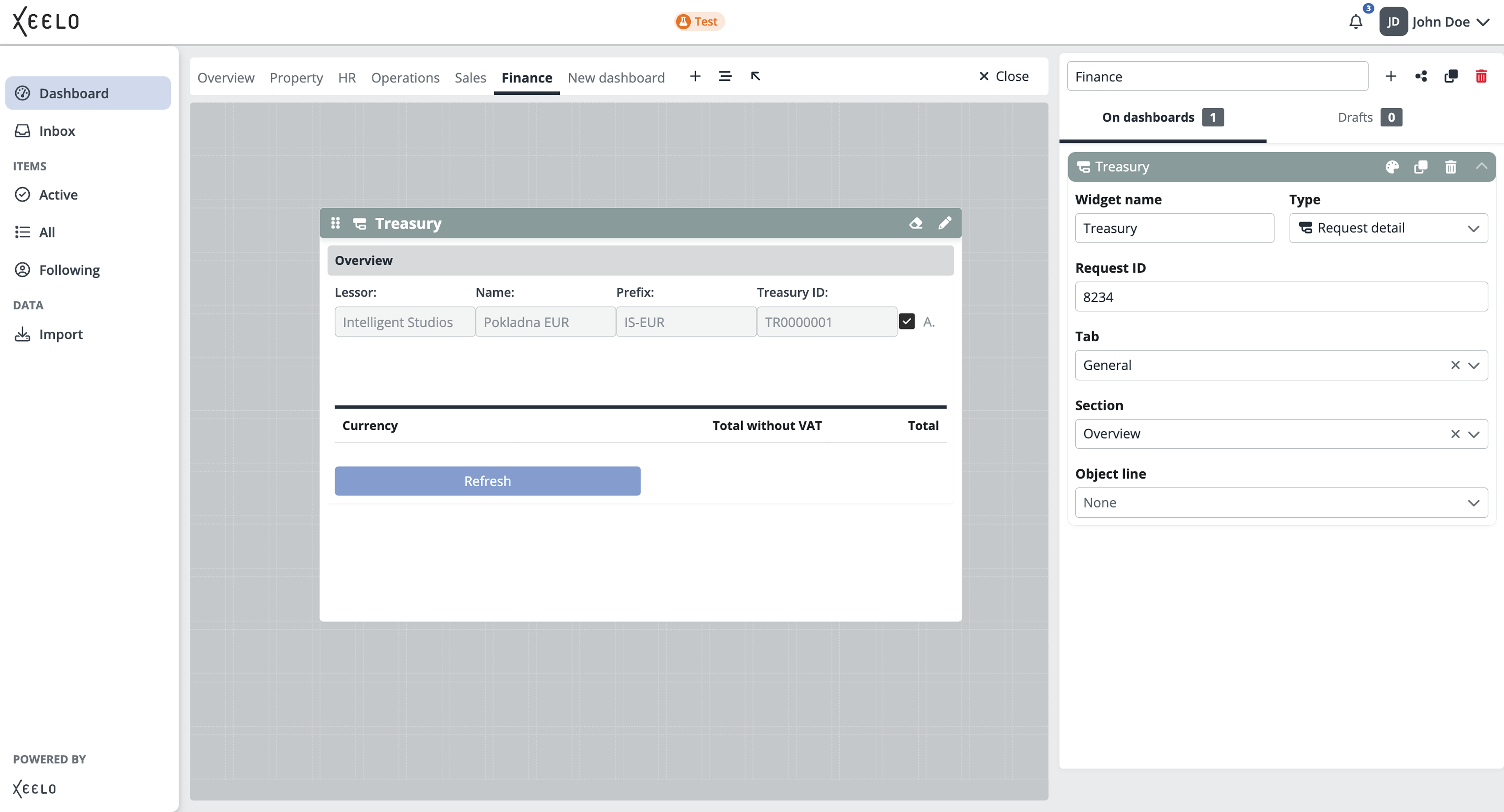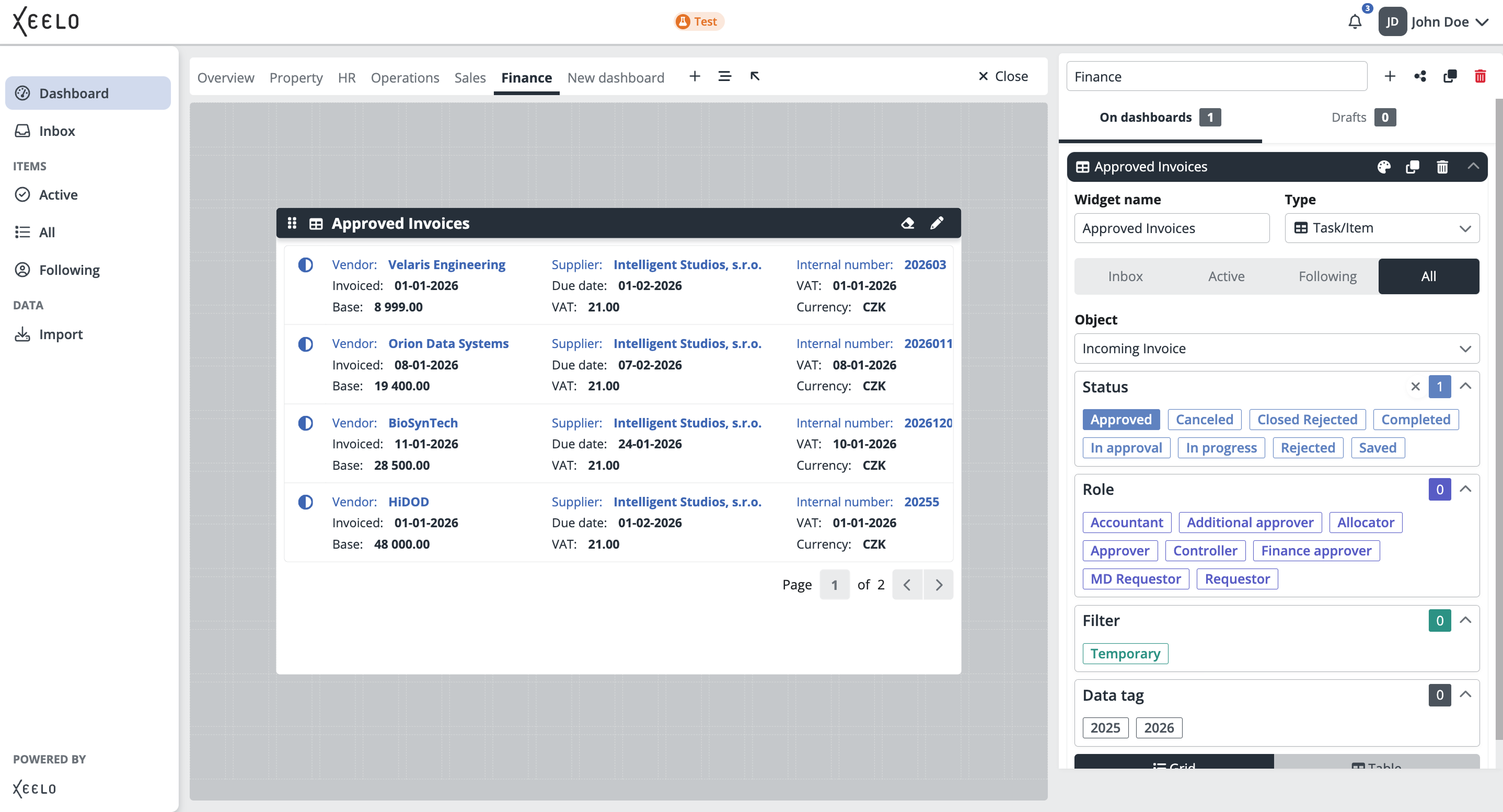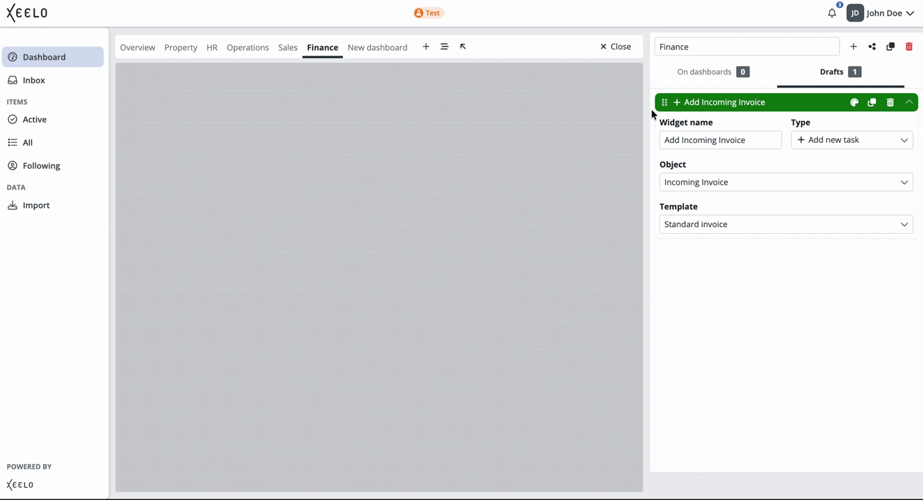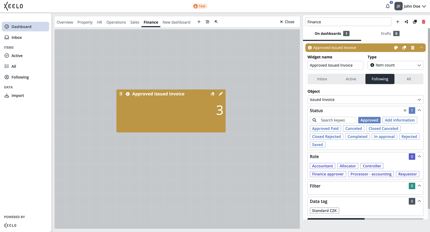 The dashboard serves as your personal workspace. You can customize it according to your needs and focus on the information that is most important for your role. With widgets, you can easily track the status of requests, access data, or quickly create new records.