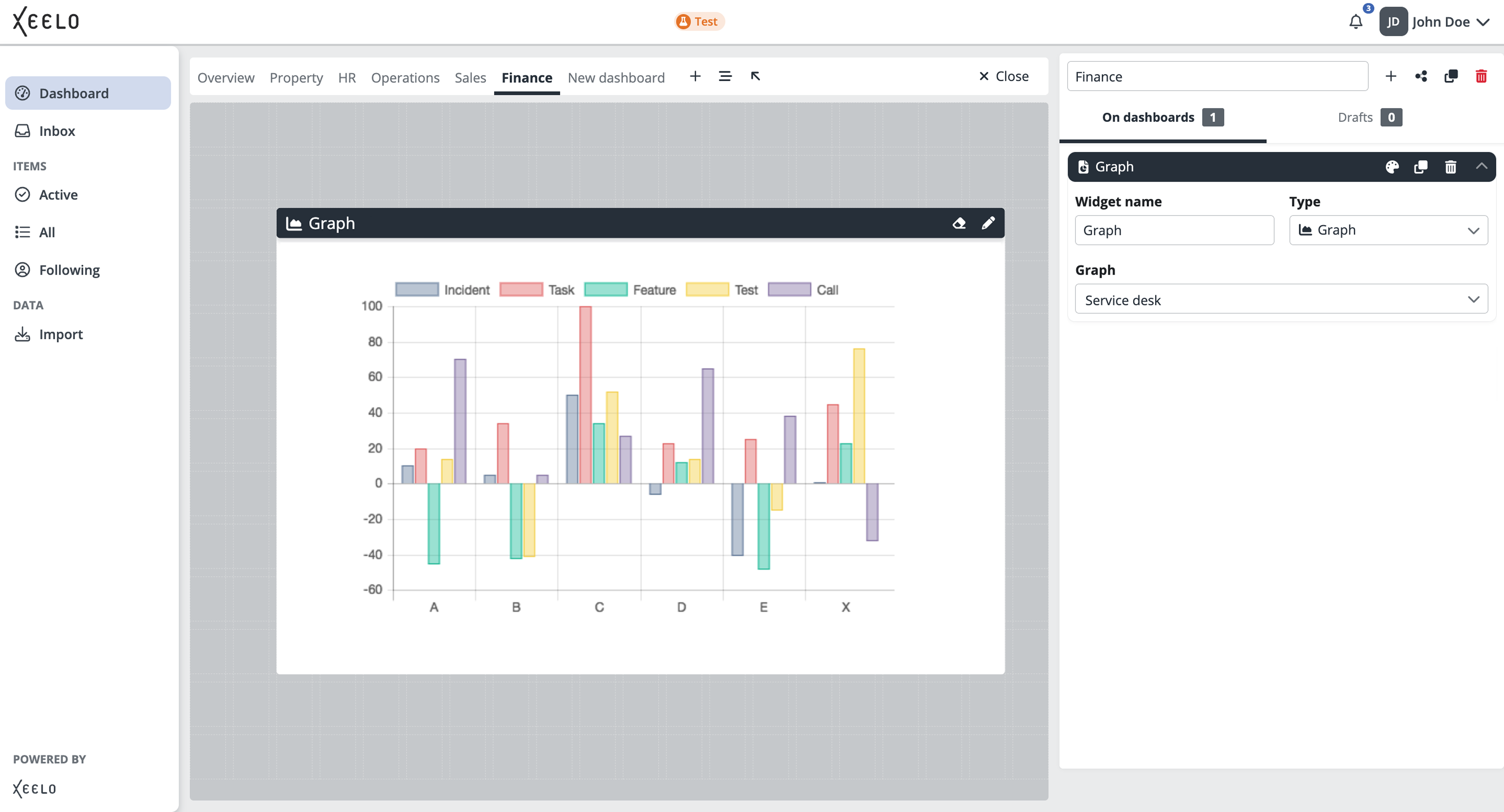 Track key metrics clearly and visually. With the Graph widget, you can display cost trends, the number of new requests, or comparisons across departments—at a glance.