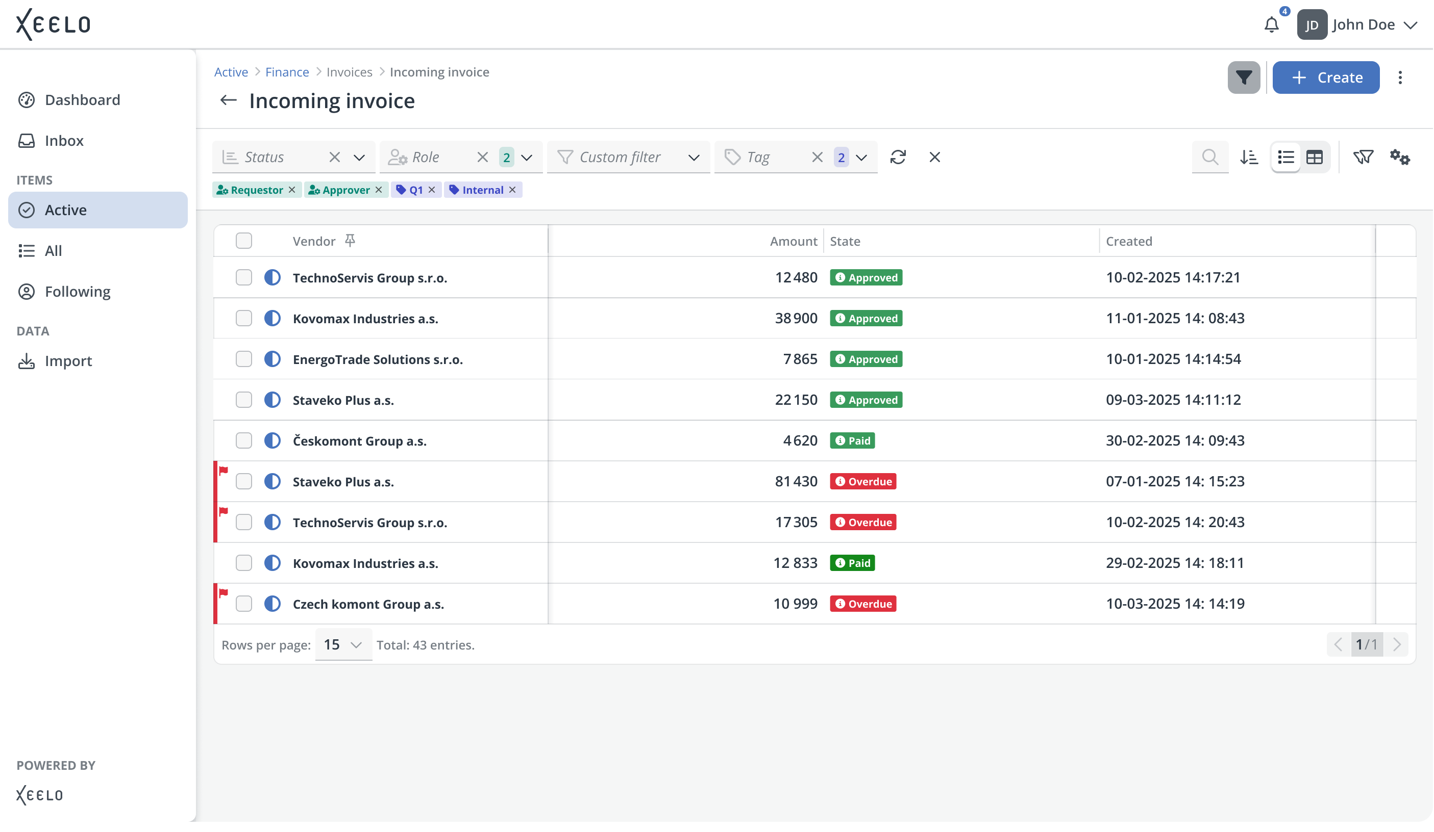 Active: helps you follow ongoing activity within the object and quickly understand what is currently in progress. It shows all requests that are being processed and that you can access based on your user permissions—whether you are working on them yourself or they are handled by one of your colleagues.