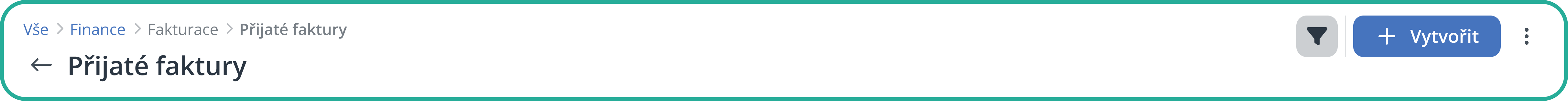 V horní části stránky najdete hlavičku s navigačním řádkem, který vám pomáhá snadno se zorientovat v přehledu požadavků. Tento tzv. breadcrumb neboli drobečková navigace ukazuje, kde se aktuálně nacházíte – od hlavního pohledu přes konkrétní společnost a typ objektu až po daný objekt, se kterým pracujete.