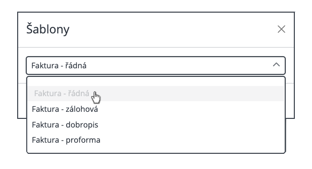 Některé objekty mohou obsahovat více šablon – předpřipravených variant formuláře pro různé typy požadavků. Každá šablona může mít jinou strukturu, povinná pole nebo specifická pravidla. V takovém případě se po kliknutí na tlačítko Vytvořit nejprve zobrazí nabídka šablon, ze které si vyberete tu, která odpovídá vaší situaci. Tím zajistíte, že se otevře správný formulář a budete vyplňovat jen relevantní data.