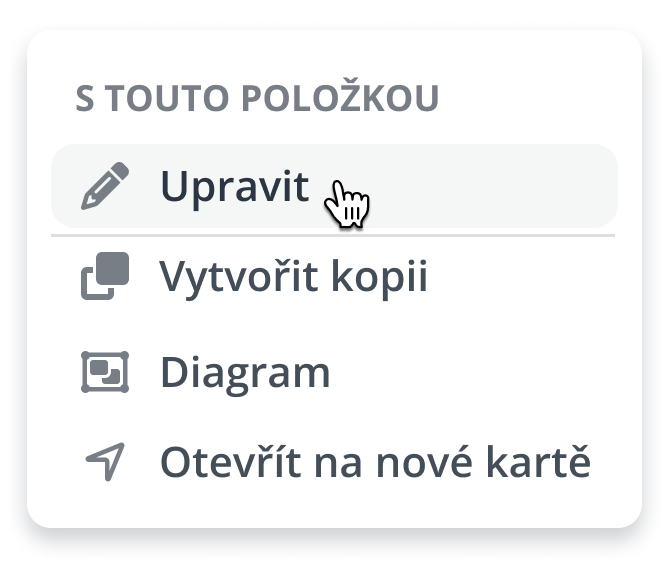 Akce je dostupná pouze u dokončených požadavků, které jsou označené systémovou ikonou zeleného zaškrtnutí a název akce se nemusí nutně jmenovat "Upravit" – administrátor objektu může zvolit libovolné označení, jako například Aktualizovat, Změnit, Update apod.
