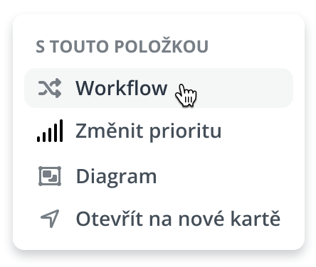 Máte před sebou jasně hotový požadavek a víte, že ho stačí jen poslat dál? Není důvod zdržovat se otevíráním detailu. Klikněte na tři tečky na řádku, zvolte Workflow a posuňte ho do další fáze. Efektivní rozhodování bez zbytečných kliků – ideální pro každodenní operativu.